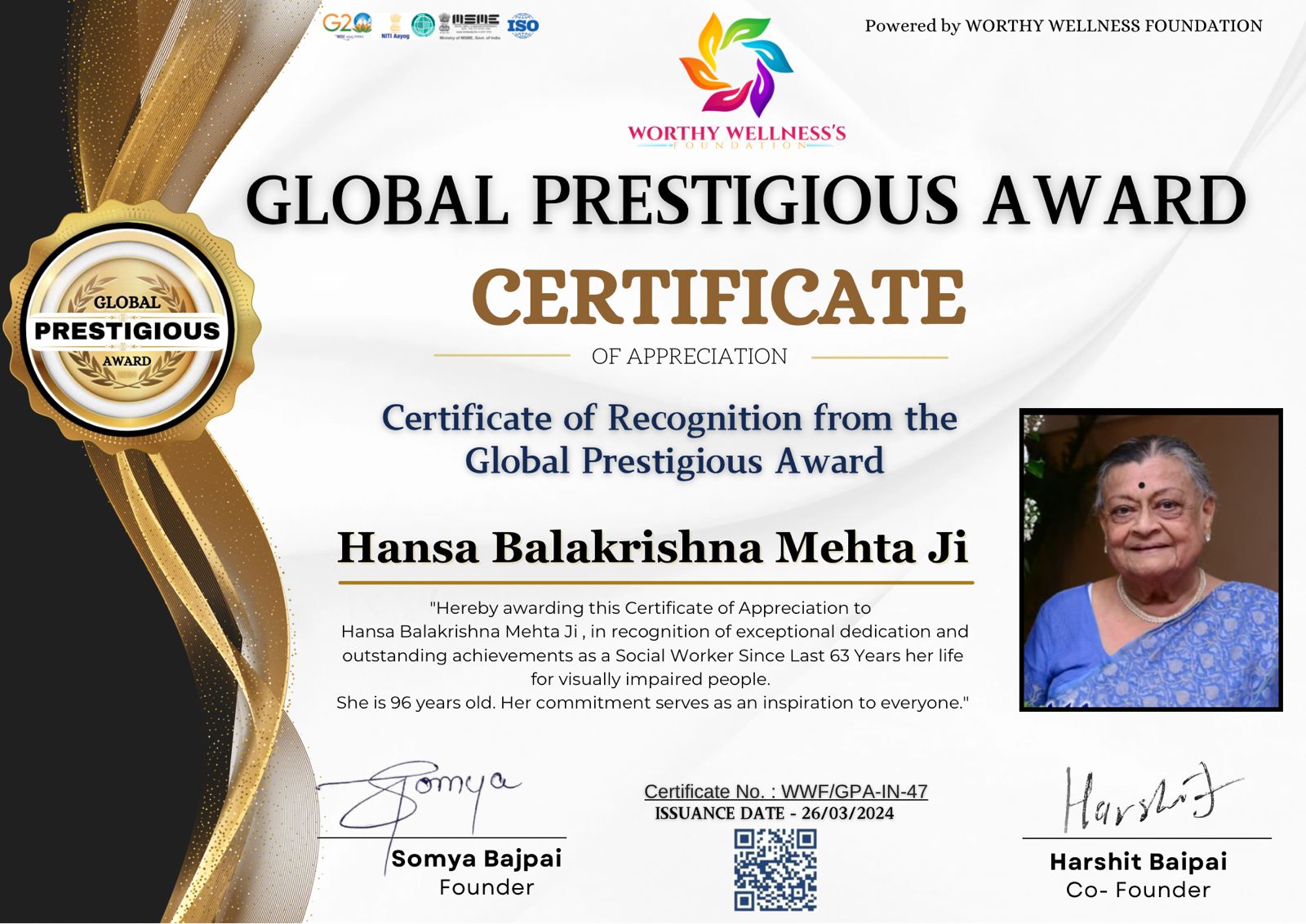 The exuberance and the energy she oozes even at this age are unmatched and very infectious. One cannot escape the optimism and keen sense of contributing to the worthy cause in her presence. One needs to be truly blessed to be in her vicinity and gain from the ocean of experience she carries.